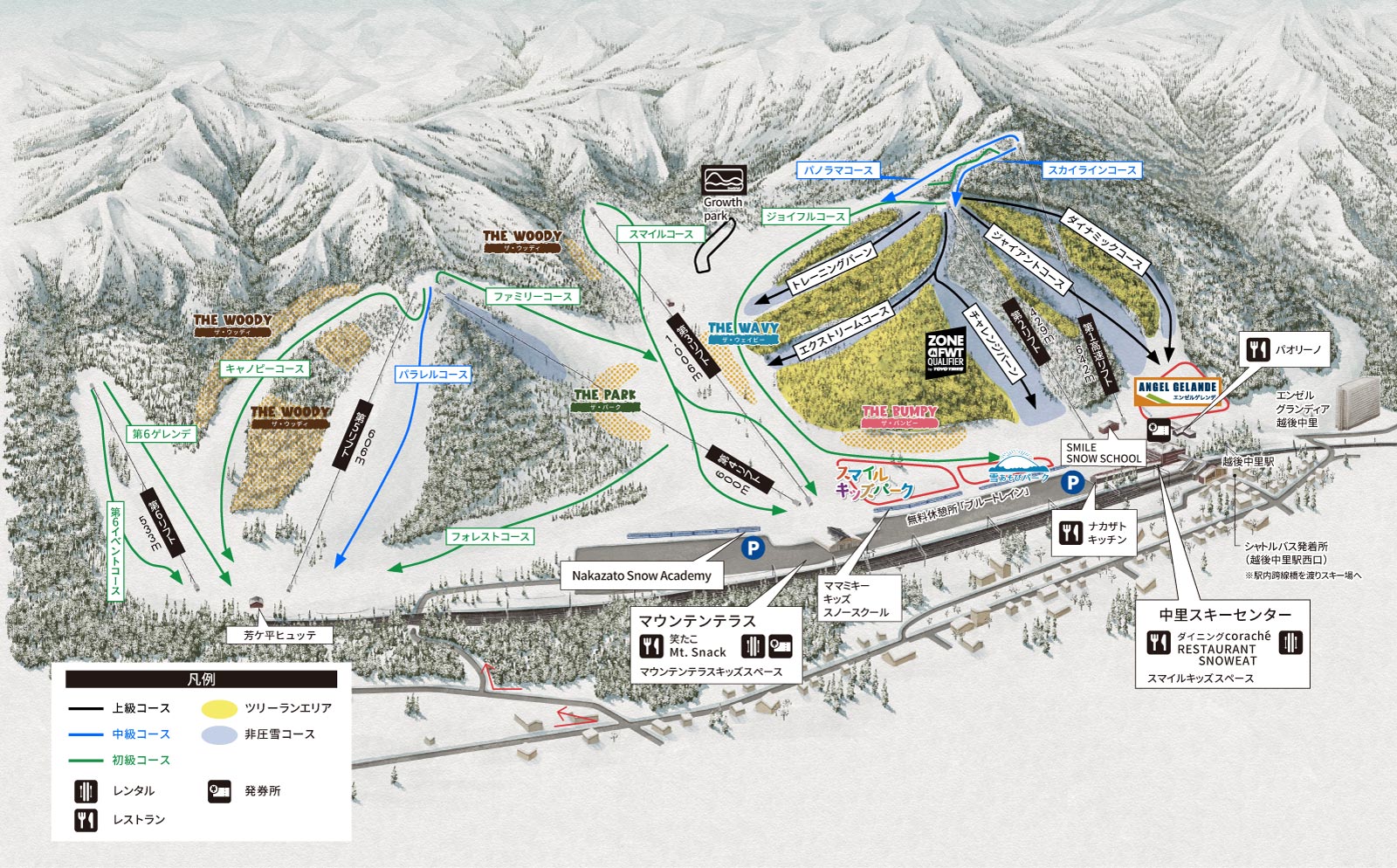 ※パラレルコース、第6イベントコースにはスクールレッスン用のポールが設置されている箇所がございます。気を付けて滑走してください。